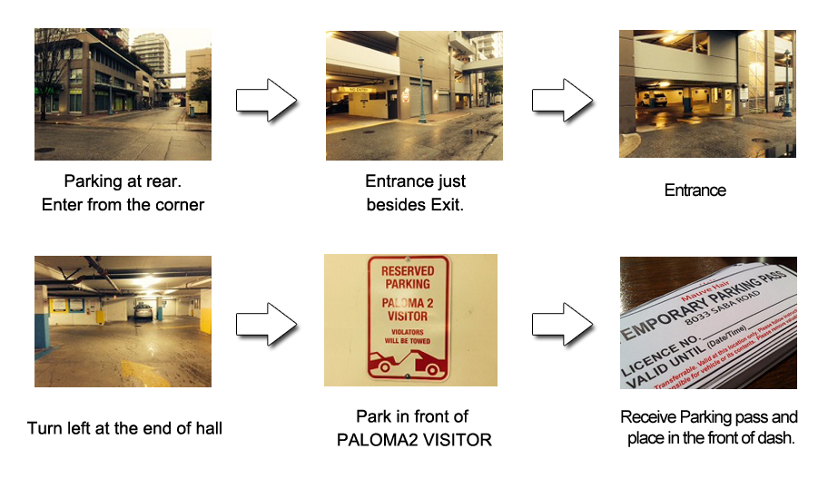Free parking available. Please park at Visitor parking on Paloma 2 residential condo. Come to our salon to pick up a free visitor parking pass (Max. 4 hours), then place it on dash.